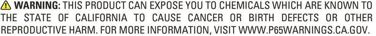 WARNING CA Proposition 65 Message | WARNING: This product can expose you to Chromium; which is known to the State of California to cause cancer or birth defects or other reproductive harm. For more information; visit www.P65warnings.ca.gov. |